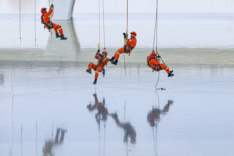 “忆党恩 颂祖国”消防主题摄影展优秀奖作品《空中“芭蕾”》,摄影:张广魁...