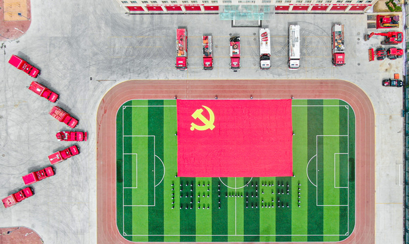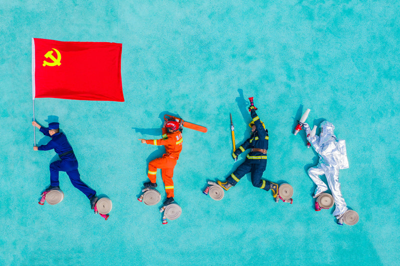 “忆党恩 颂祖国”消防主题摄影展优秀奖作品《峥嵘百年 新蓝向党》,摄影:李震...