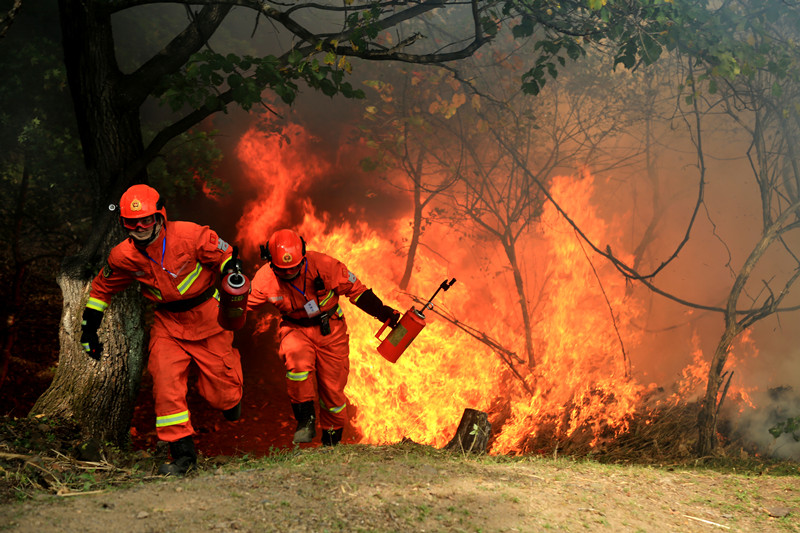 “忆党恩 颂祖国”消防主题摄影展优秀奖作品《与火魔赛跑》,摄影:张沫...