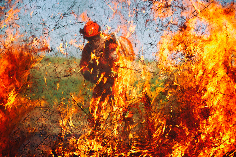 “忆党恩 颂祖国”消防主题摄影展优秀奖作品《“硝烟”弥漫》,摄影:李壮...