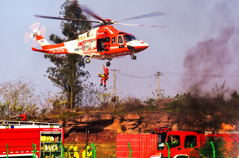 “忆党恩 颂祖国”消防主题摄影展优秀奖作品《空中救援》,摄影:杨毅...