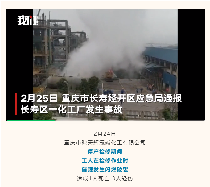 - 重庆一化工厂发生事故 造成1人死亡 3人轻伤