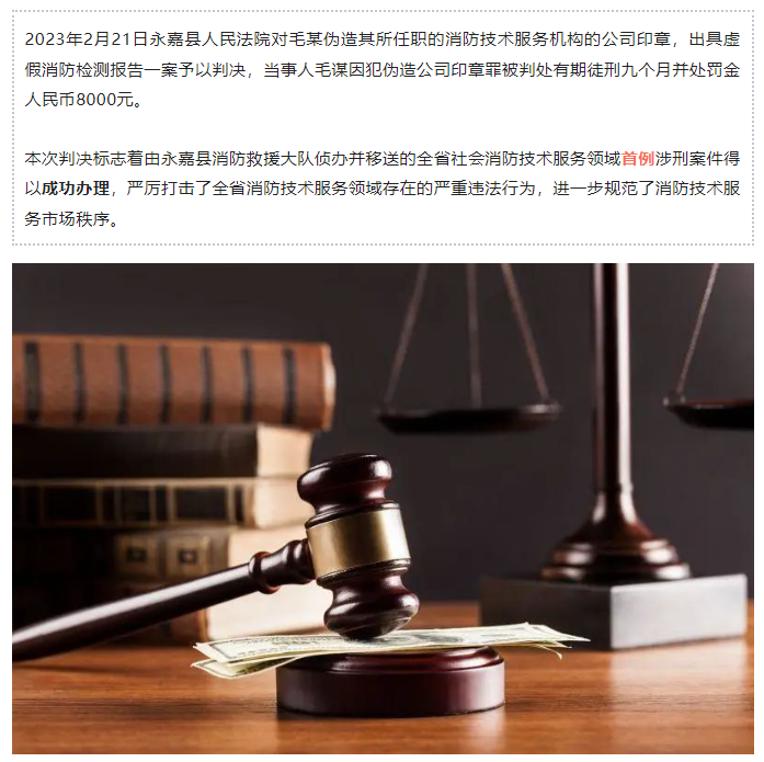 - 首例:消防技术服务机构人员涉刑事案件被判刑